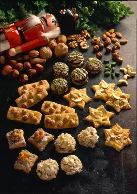 Beat the egg whites until stiff, allowing the sugar to trickle in. Keep beating until the mixture is very firm. Mix nuts and flour and fold in. Pour into a piping bag with a perforated spout.