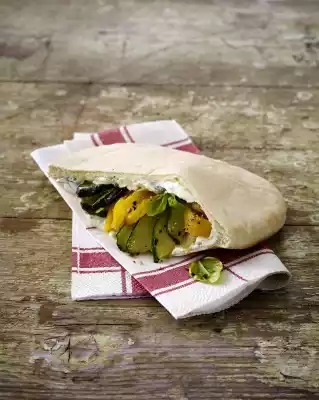 Season vigorously with salt and pepper. Place the pita pockets in the toaster with the markings facing upwards and toast. Remove, let cool briefly, cut off at the mark, spread with cream from the inside.