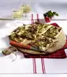 Preheat the oven (electric cooker: 200 °C/circulating air: 175 °C/gas: level 3). Peel garlic and chop finely. Heat 1 tbsp. oil in a saucepan. Sauté the garlic in it. Add spinach and defrost.