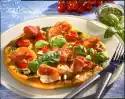 Place dough circles on top. Spread 3 tablespoons of tomato puree on each dough. Spread cherry tomatoes on top and season with salt and pepper. Bake in the preheated oven (electric cooker: 200 °C/ convection oven: 175 °C/ gas: level 3) for about 25 minutes. In the meantime cut the mozzarella into slices. Clean and wash the rocket, dab dry and pluck roughly. After baking, cover pizzas with slices of mozzarella, Parma ham and rocket salad, drizzle with 4 tablespoons of olive oil and sprinkle with coarse pepper