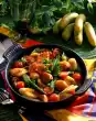 Fry in 2 tablespoons of hot oil on each side over high heat for 2 minutes. Season with salt and pepper and place on a baking tray. Clean, wash and slice the tomatoes. Cut mozzarella into slices. Strip rosemary needles from the stems. Spread the prepared ingredients and ham on the meat slices. Season again with salt and pepper. Bake in the preheated oven (electric cooker: 200 °C/ convection oven: 175 °C/ gas: level 3) for 5-8 minutes. In the meantime, cut the potatoes in half and fry them crisply in 2 tablespoons of hot oil. Season with salt and pepper.