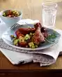 Fry the chicken escalopes for 2-3 minutes on each side. Season with salt and pepper and remove. Heat 1 tablespoon of olive oil in the frying fat. Fry bacon and onion cubes briefly. Add remaining vegetables and fry for another 2 minutes.