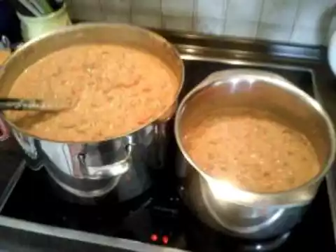 # Saute the minced meat crumbly Then add all ingredients except cream and processed cheese and cook for 10-15 minutes. Finally stir in the processed cheese and cream and season to taste. # very tasty!!! good appetite!!!.
