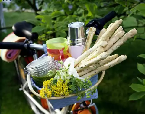 Add 1/4 litre of lukewarm water and knead to a smooth dough with the dough hooks of the hand mixer. Knead in prepared ingredients. Divide dough into 20 equal portions. Form 20 sticks of approx. 25 cm length. Distribute on 2 baking trays lined with baking paper. Bake the trays one after the other in a preheated oven (electric cooker: 200 °C/ convection oven: 175 °C/ gas: level 3) for 12-15 minutes. Pesto tastes good with it