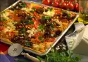 Let it go for another 15 minutes. Peel garlic and cut into thin slices. Grease baking tray. Roll out the dough on a floured work surface and place on the baking tray. Spread the cheese evenly on top.