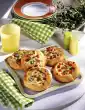 Spread the pizza bases with tomato puree, cover with all the ingredients. Sprinkle with Parmesan cheese and herbs. Bake in the preheated oven (electric cooker: 225 ° C/ gas: level 4) one after the other 2 pizza bases for about 15 minutes.