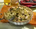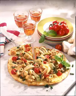 Cut the olives into slices. Drain the tuna. Heat the fat in a pan. Sauté the mushrooms, onions and spring onions briefly while turning. Add garlic and season with salt and pepper. Unroll the pizza dough with the baking paper and place on a baking tray. Sprinkle with half of the cheese and cover with tuna, tomatoes and mushroom-onion mixture. Sprinkle with olives, oregano, salt, pepper and remaining cheese. Bake in the preheated oven (electric oven: 200 °C/ gas: level 3) for about 20 minutes.