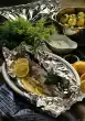 Arrange fish rolls and sauce. Sprinkle with sprouts. Garnish with remaining herbs and lemon slices. Serve with broccoli and rice
