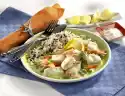 Place the plaice rolls in an ovenproof dish, add wine and 100 ml of water. Cook in the preheated oven (electric cooker: 200 °C/ convection oven: 175 °C/ gas: level 3) for about 15 minutes. Wash the lemon, rub dry and grate the peel.