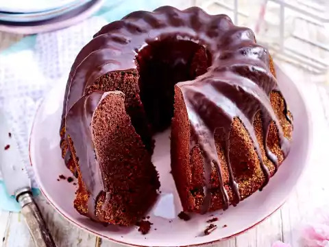 Put the dough into a greased, flour-dusted ring cake tin (approx. 2 1/2 l capacity) and smooth it down. Bake in the preheated oven, lower shelf, (electric oven: 175 °C/ convection oven: 150 °C/ gas: see manufacturer) for approx. 50 minutes (stick test). Place the finished cake in the tin and let it cool on a cake rack for approx. 15 minutes. Turn out the chocolate cake from the tin and let it cool down for about 2 hours.