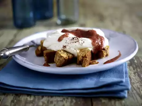 Arrange the fig coulis on the plates. Dust with cocoa.