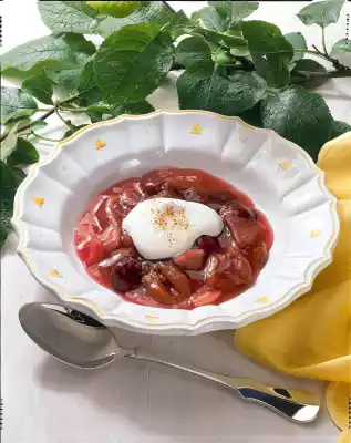Stir cornflour with a little cold water until smooth and bind the plum juice with it. Add the plums, bring to the boil briefly and pour into deep plates in portions. Whip cream until semi-stiff and season with sugar and cinnamon. Fill onto the cooled down groats. Sprinkle with a little cinnamon