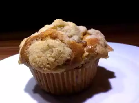 In a small bowl, mix the crumble ingredients to a crumbly dough. Pour the crumble mixture onto the muffins.