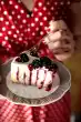 Cut the cake into about 30 squares (approx. 6.5 x 6.5 cm) and serve with Madeira plums