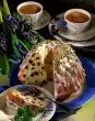 Fill in sponge cake mixture and smooth it down. Bake in the preheated oven (electric: 175 °C/ gas: level 2) for 25-30 minutes. Remove from the oven, remove from the edge with a sharp knife and let cool on a grid. For the cream, soak gelatine in cold water. Wash, halve and stone the plums. Put 6 plum halves aside for decoration. Boil up the rest of the plums with red wine, sugar, citro-back and cinnamon. Simmer at low heat for about 5 minutes. Remove the cinnamon stick. Puree the plums and then pass through a sieve. Gradually stir squeezed gelatine into the still hot plum puree. Place the puree in a cool place until it begins to gel.