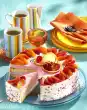 In the meantime, whip the cream until stiff and fold into the gelling plum puree in portions. Remove the cake base from the tin, place on a cake plate and place a cake ring around it. Spread the cream on the cake base and spread it cloudy. Put the cake in a cool place for about 3 hours. Before serving, loosen the cake ring with a sharp knife. Decorate the cake with the remaining plums, dessert decoration and mint as desired