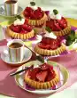 Mix marzipan, egg and icing sugar to a spreadable mixture. Pour into a piping bag with a star-shaped spout and spray the grid on the cakelets. Bake in the preheated oven (electric oven: 200°C/ gas: level 3) for 30 minutes. Take out of the moulds and let cool down. Sprinkle with icing sugar. Results in 9 pieces