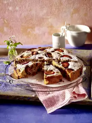 Spread the plum wedges on the dough and bake in a preheated oven (electric cooker: 175 °C/ convection oven: 150 °C/ gas: see manufacturer) for 30-40 minutes (stick test).