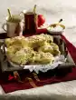 Portion in a ring (approx. 8 cm Ø) on plates. In the meantime boil 1 litre of salted water, 100 ml vinegar and thyme stalks. Beat the eggs in 6 cups and carefully slide them into the vinegar water.