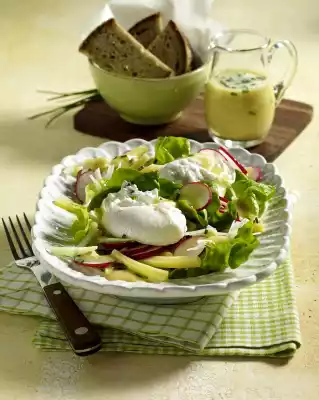 Arrange the eggs on the salad and sprinkle with the vinaigrette. Bread is delicious with it.