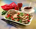 Put in a cool place. Heat 25 ml oil in a frying pan, add potatoes and fry until golden brown while turning. Season with salt and pepper. In the meantime, lift the smoked pork loin out of the stock and slice thinly. Serve the potatoes, smoked pork loin and some sauce on a plate, garnished with herbs as desired. Res