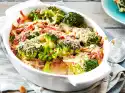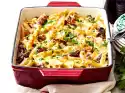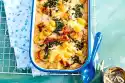 Put the spaetzle mixture into one large or four small greased casserole dishes. Cut the fillets into slices and spread on the gratins. Sprinkle with cheese, fried onions and parsley. Bake in the preheated oven (electric cooker: 200 °C/circulating air: 175 °C/gas: see manufacturer) for about 15 minutes.