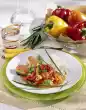 Remove the chicken breasts from the bone without removing the skin. Wash the meat, dab dry and rub with pepper. In the hot oil, first fry the skin side thoroughly, then continue to fry on the other side for about 10 minutes. Salt, remove and keep warm. Deglaze the meat with wine, sprinkle with sauce thickener and bring to the boil. Season to taste. Cut the chicken meat open and arrange on the vegetables. Pour sauce over it