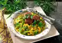 Stir the beef soup paste, salt, pepper, nutmeg and curry into the sauce. Bring to the boil and simmer over a low heat for 5-10 minutes. Add the sauce thickener and bring to the boil again while stirring. Season to taste and keep warm. Clean, wash and quarter the pointed cabbage. Cook the cabbage quarters in plenty of boiling salted water for about 10 minutes. In the meantime, wash the tomatoes, dab them dry, dice them and put them into the hot sauce. Drain the pointed cabbage and arrange on a plate. Pour some sauce over them.