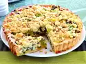 Boil 800 ml water with butter and 1 teaspoon salt in a pot. Stir in 250 g polenta with a wooden spoon. Turn off the stove and let the polenta swell for about 12 minutes.