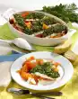 At the same time heat 1 tablespoon of oil in a second pan. Fry the fish-saltimbocca in it for about 3 minutes on each side until golden brown. Arrange everything and garnish with remaining sage. Ciabatta bread goes well with it.