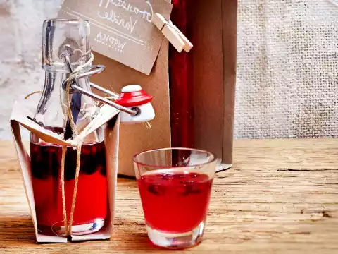 Pour vodka-pomegranate mix through a funnel into clean bottles and close the bottles.