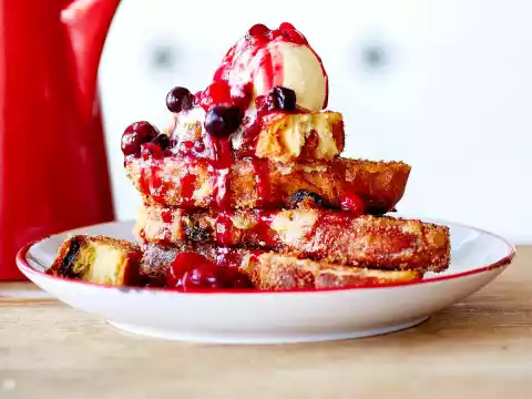 Fry half of the Stollen slices for about 5 minutes on each side, turning once. Take out and turn in cinnamon sugar. Arrange the poor Stollen knights with Christmas grits. If you like, serve vanilla ice cream with it.