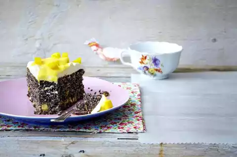 Fold the beaten egg white in portions under the poppy seed mixture. Fill the dough into the tin, smooth it down and bake in a hot oven for 40-45 minutes. Take out and let cool down.