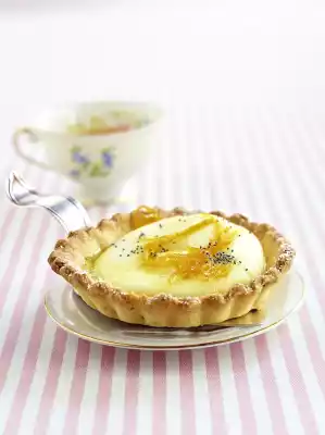 Add poppy seeds, egg, 75 g sugar and salt. Knead first with the dough hooks of the hand mixer, then with your hands to a smooth dough. Roll out on a floured work surface (approx. 2 mm thick) and cut out circles (approx. 11 cm Ø). Place the dough in the moulds, allowing the dough to protrude slightly. Prick the base several times with a fork. Knead the rest of the dough, roll out and line the remaining moulds. Chill for about 30 minutes.
