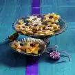Sprinkle almond flakes on the work surface and turn the roll in it (if necessary, press it down with your hands). Cut the roll into approx. 3 cm thick slices and distribute on 2 baking trays lined with baking paper. Halve the cherries and press one half into the middle of each snail. Bake the trays one after the other in a preheated oven (electric cooker: 200°C/ gas: level 3) for about 20 minutes. Mix egg yolk and remaining milk and brush the snails with it during the last 5 minutes of the baking time. Let the finished snails cool down