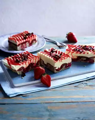 Wash, clean and halve 350 g strawberries. Cream 175 g butter, 175 g sugar and sour cream with the whisks of the hand mixer. Stir in the eggs one after the other. Mix flour, poppy seeds and baking powder, stir into the dough. Put half of the dough on the greased, floured fat pan of the oven (32 x 39 cm) and smooth it down. Stir cocoa and 4 tbsp. milk into the other half of the dough and spread on the light-coloured dough. Spread the strawberry quarter on the cake