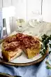 Roll out the dough on a floured work surface until round (approx. 26 cm Ø). Grease a springform pan (22 cm Ø) and line with dough. Fold the protruding edges inwards and press them firmly. Prick the pastry base several times with a fork. Line with baking paper, add dried peas for blind baking and bake in a preheated oven (electric cooker: 175 °C/ convection oven: 150 °C/ gas: see manufacturer) for approx. 10 minutes. Remove baking paper and dry peas. Continue baking for approx. 5 minutes. Remove from the oven and let cool on a cake rack. Loosen the rim of the springform pan