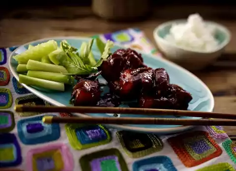 Wash pork belly, dab dry and cut into small pieces (approx. 1 x 1.5 cm). Peel and halve shallots and cut into strips.