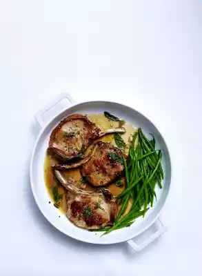 Put the chops back into the pan and continue to braise for about 5 minutes. Arrange chops and beans together