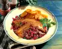 Add onions and zucchini to the potatoes and fry for another 10 minutes. Pluck thyme leaves from the stems and add. Season chops with salt, pepper and paprika and turn them in flour. Tap off the excess flour.