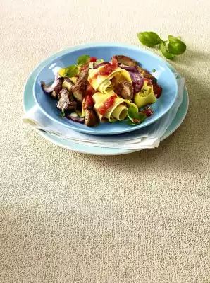 Prepare the pasta in boiling salted water according to the instructions on the packet. Heat the oil in a large pan. Fry the meat for 2-3 minutes while turning. Add chilli, garlic and onion and fry briefly.