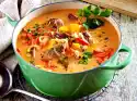 Peel onions and garlic. Cut onions into strips, garlic into pieces. Clean, wash and cut the chilli pepper into rings, removing the white seeds. Wash the meat, dab dry, halve lengthwise and cut into slices.