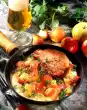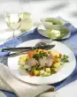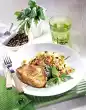 Bring to the boil and cook for 1-2 minutes. Stir 50 g cheese into the sauce and melt in it. If the sauce is not creamy enough, stir in sauce thickener, bring to the boil again briefly and season with salt, pepper and granulated stock. Add ham to the sauce and pour over the escalopes. Sprinkle with breadcrumbs and remaining cheese. Spread fat in flakes on top. Bake in the preheated oven (electric cooker: 200 °C/ gas: level 3) for 15-20 minutes