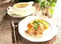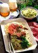 Dice meat from the previous day. Clean, wash and cut the vegetables into strips. Drain the mandarins and collect the juice. Peel onions and cut into slices