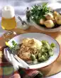Put a few leaves aside for garnishing, add the rest of the chervil leaves to the potatoes 2 minutes before the end of the cooking time. Pour the sauce into a saucepan, stir in apple juice, heat up and season with salt and pepper.