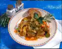Cut the meat into slices and arrange on top. Serve garnished with remaining herbs and the puff pastry flowers. Add the rest of the sauce extra.