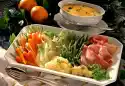 Fry again all around in frying fat. Fry over medium heat for about 12 minutes. Peel asparagus, cut off woody ends. Boil up plenty of salted water. Season with lemon slice and sugar. Cook the asparagus for 15-20 minutes. Peel and grate potatoes. Mix with the grated zucchini, flour and egg yolk. Season with salt and pepper. Wash and chop sage leaves. Heat 2 tablespoons of oil. Fry the potato mixture by the spoonful for 3-4 minutes on each side until golden brown. Add the sage to the frying fat at the end. For the sauce, stir the contents of the bag into 1/8 litre cold water.