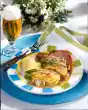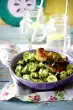 Wash herbs, chop. Wash, seed and dice tomatoes. Heat 1 tablespoon of fat. Brown the breadcrumbs in it. Add tomatoes and herbs. Spread on the fillets. If necessary, gratinate briefly in a hot oven. Arrange everything. Serve with roast potatoes