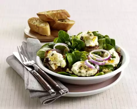 Arrange salad and meat on plates. Serve with toasted baguette sprinkled with olive oil and seasoned with salt and pepper.