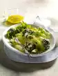 Clean the salad, wash thoroughly and drain. Wash the meat, dab dry and cut into finger-thick strips. Season with salt and pepper. Heat 2 tablespoons of oil in a pan in portions.